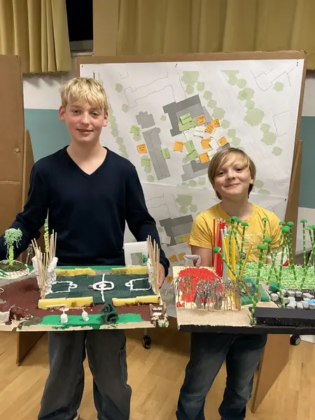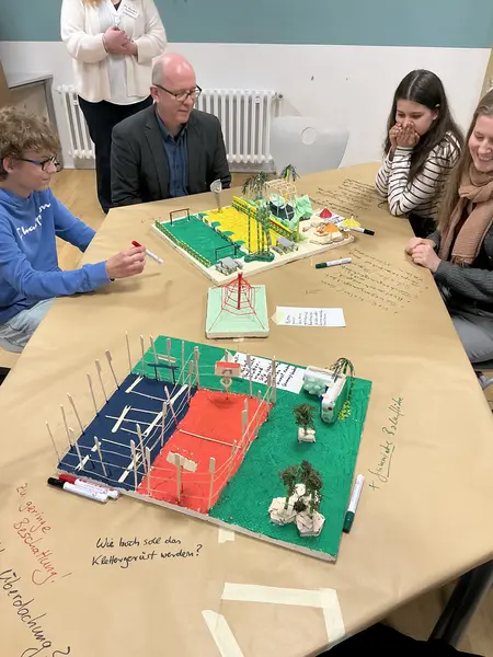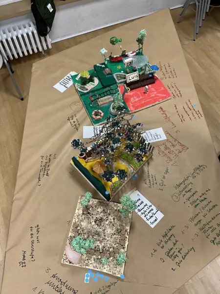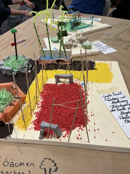 Ausgangspunkt waren die Ergebnisse einer Projektwoche zum Thema (Un)menschlicher Schulhof, das Frau Heinrichs-Fix, Herr Harms und Herr Jansen begleitet hatten: Unsere Schüler:innen haben verschiedene Hamburger Schulhöfe erkundet, Ideen gesammelt und eigene Modelle für einen neuen, erlebnisreichen und naturnahen Schulhof entworfen.