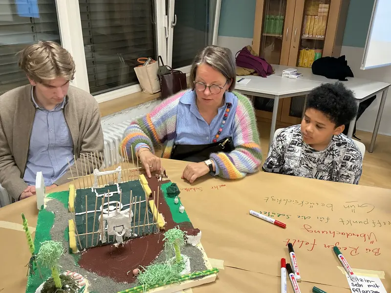 Beim Dialogabend saßen nun alle gemeinsam an wechselnden Tischgruppen. Die Modelle wurden genau unter die Lupe genommen – es wurde gelobt, gefragt, diskutiert und kritisch angemerkt. So entstand ein vielfältiger Austausch zwischen allen Beteiligten.